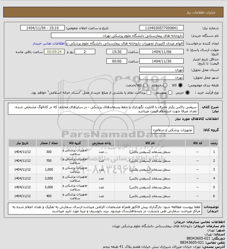 | 5 | -- | سطل پسماند (سیفتی باکس) | عدد | تجهیزات پزشکی و سلامت | 5,000 | 1404/11/12 |