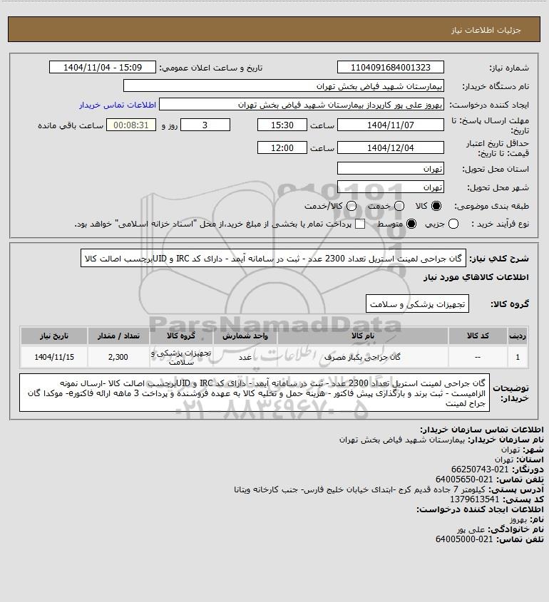 نام دستگاه خریدار:بیمارستان شهید فیاض بخش تهران