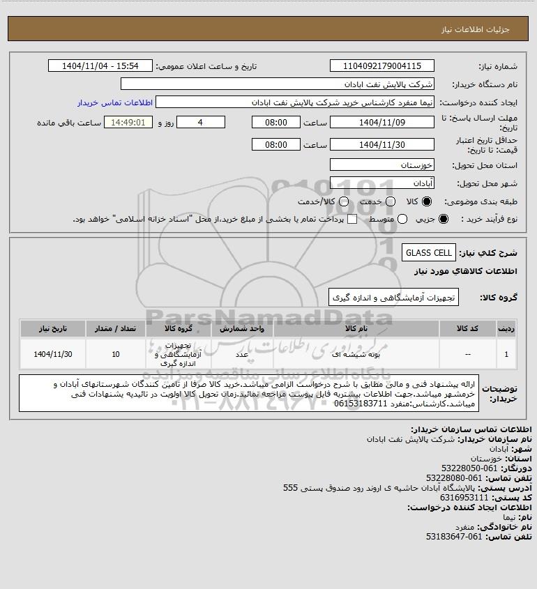 شرح کلی نیاز: GLASS CELL