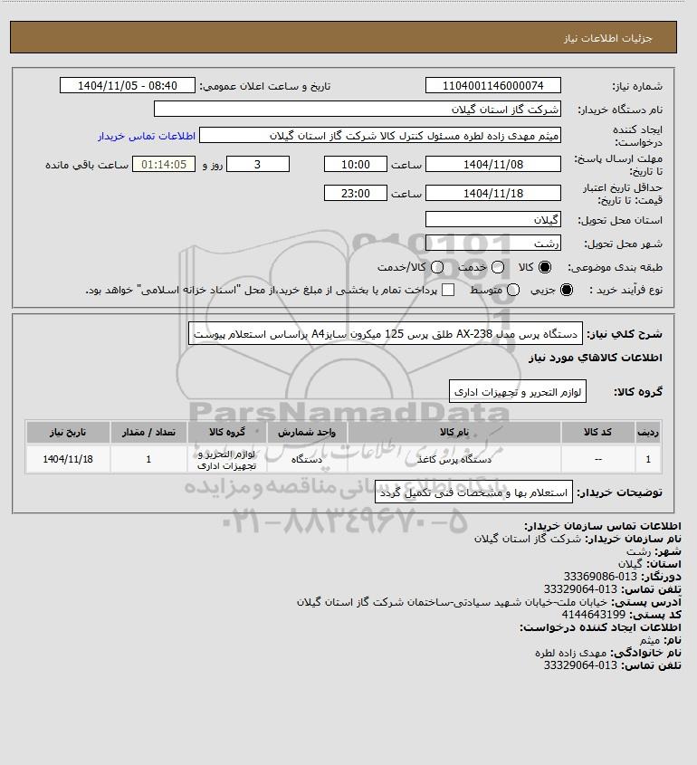 نام دستگاه خریدار:شرکت گاز استان گیلان