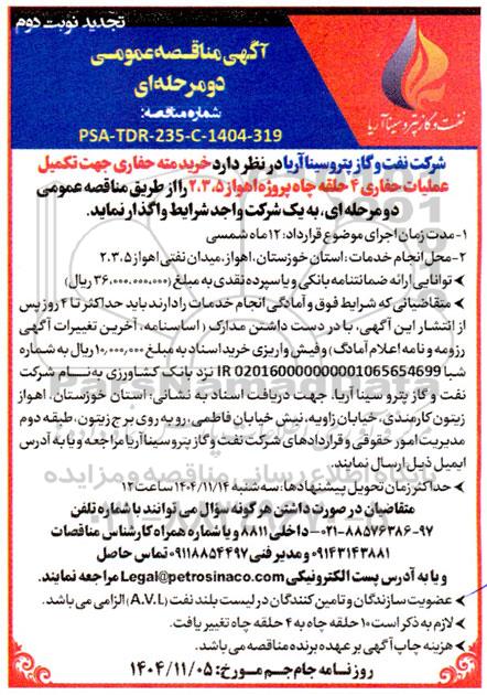 شماره مناقصه PSA-TDR-235-P-1404-319