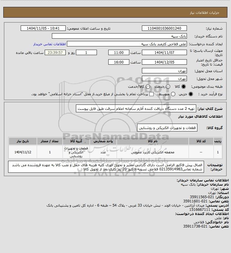 نام سازمان خریدار: بانک سپه