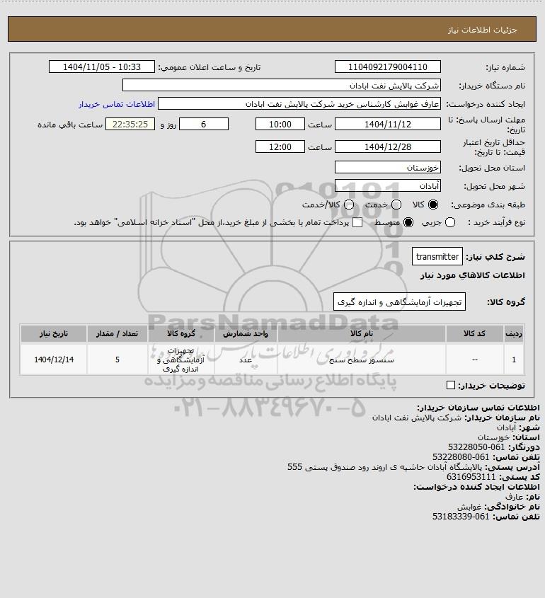 نام دستگاه خریدار:شرکت پالایش نفت ابادان