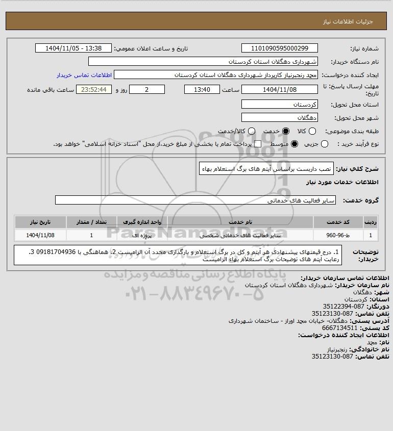 استعلام نصب داربست براساس آیتم های برگ استعلام بهاء, استعلام نصب داربست براساس آیتم های برگ استعلام بهاء