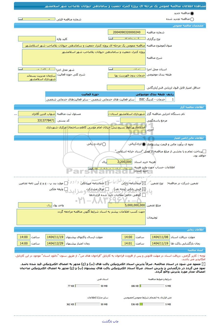 مناقصه مناقصه عمومی یک مرحله ای پروژه کنترل جمعیت و ساماندهی حیوانات بلاصاحب شهر اسلامشهر, مناقصه، مناقصه عمومی یک مرحله ای پروژه کنترل جمعیت و ساماندهی حیوانات بلاصاحب شهر اسلامشهر