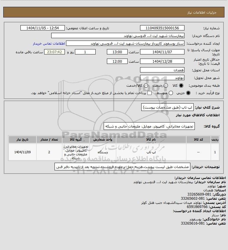 استعلام لپ تاپ (طبق مشخصات پیوست), استعلام لپ تاپ (طبق مشخصات پیوست)