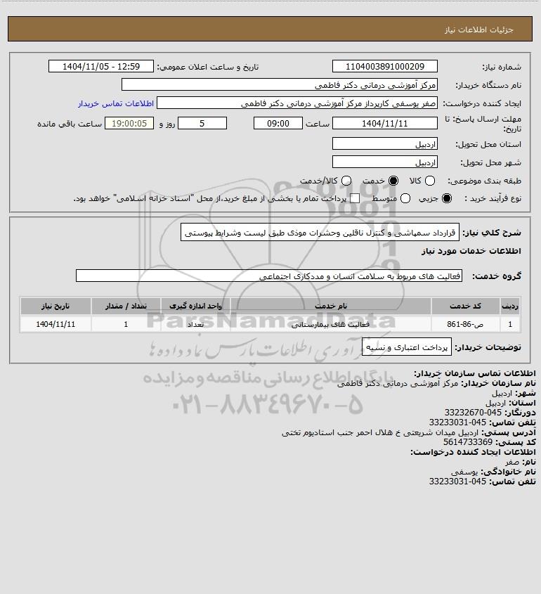 شرح کلی نیاز: قرارداد سمپاشی و کنترل ناقلین وحشرات موذی طبق لیست وشرایط پیوستی