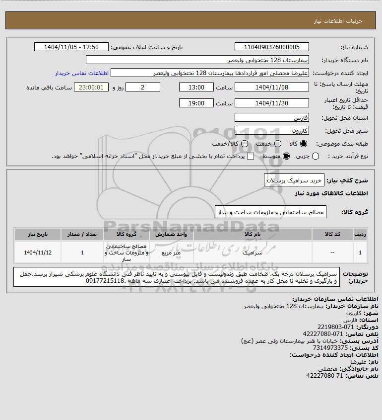 شرح کلی نیاز: خرید سرامیک پرسلان