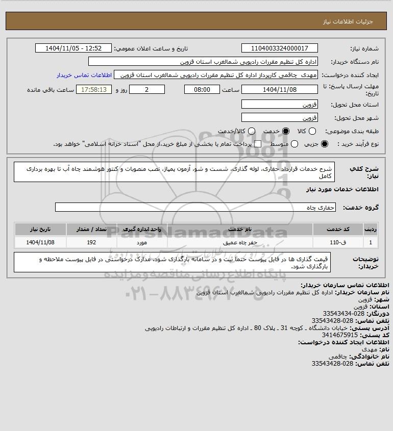 نام دستگاه خریدار:اداره کل تنظیم مقررات رادیویی شمالغرب استان قزوین