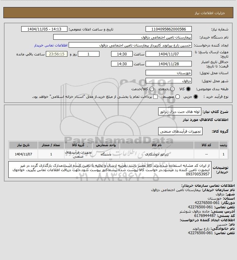 نام دستگاه خریدار:بیمارستان تامین اجتماعی دزفول