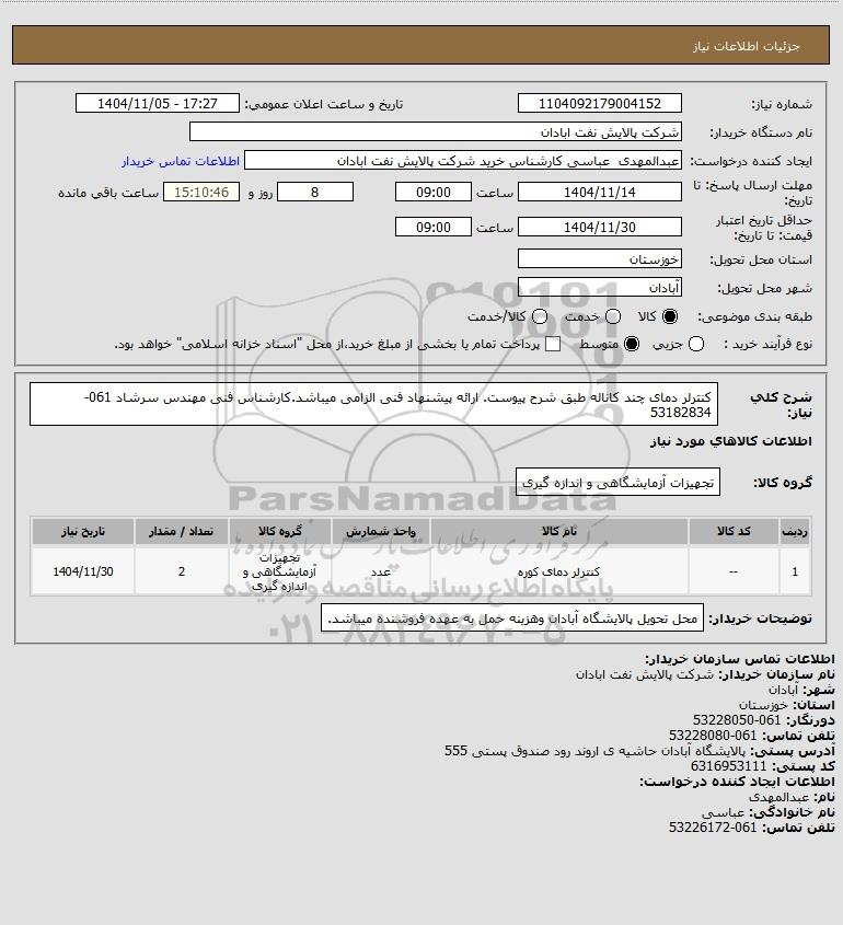 نام دستگاه خریدار:شرکت پالایش نفت ابادان