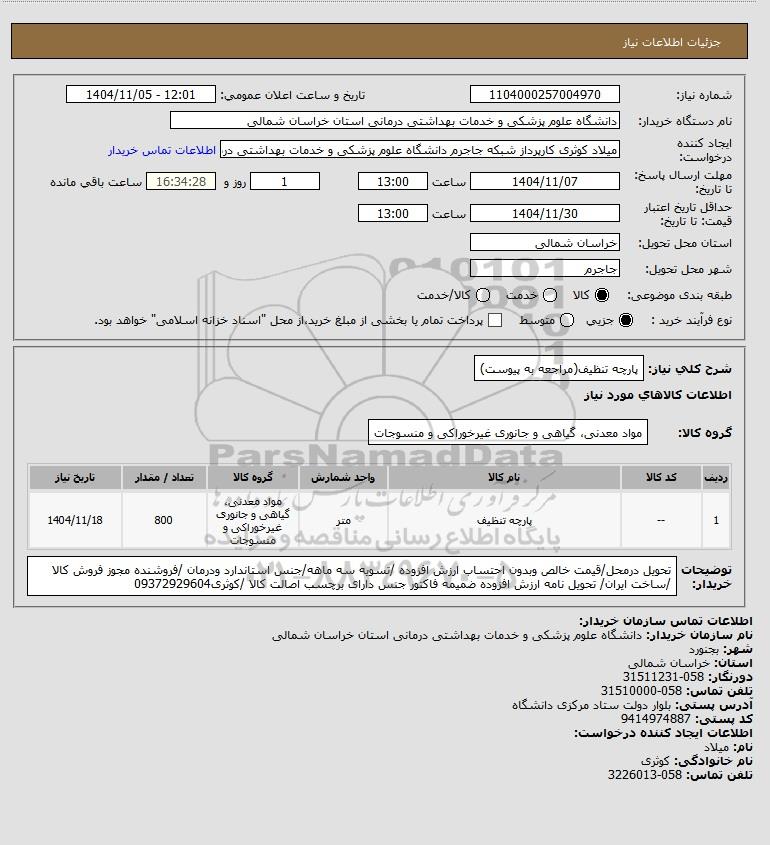 شرح کلی نیاز: پارچه تنظیف(مراجعه به پیوست)