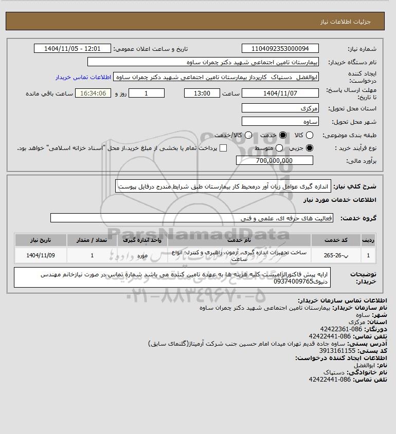 نام دستگاه خریدار:بیمارستان تامین اجتماعی شهید دکتر چمران ساوه