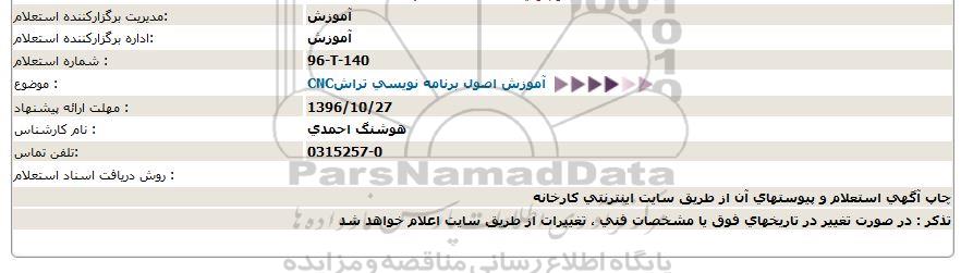 استعلام آموزش اصول برنامه نویسی تراش CNC, استعلام , استعلام آموزش اصول برنامه نویسی تراش CNC