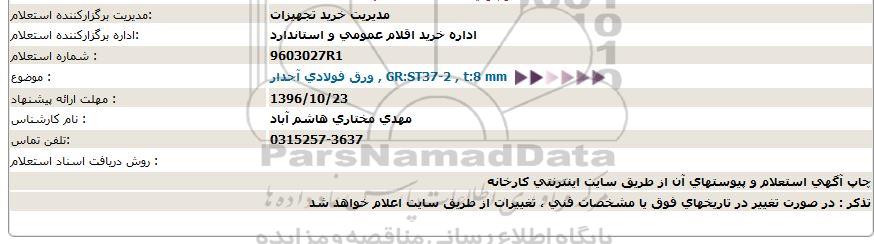 استعلام ورق فولادی آجدار GR:ST37-2 t:8 mm, استعلام , استعلام ورق فولادی آجدار GR:ST37-2 t:8 mm