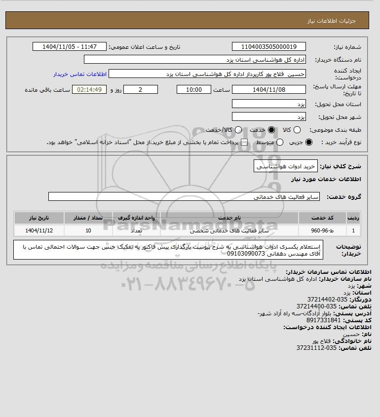 نام دستگاه خریدار:اداره کل هواشناسی استان یزد