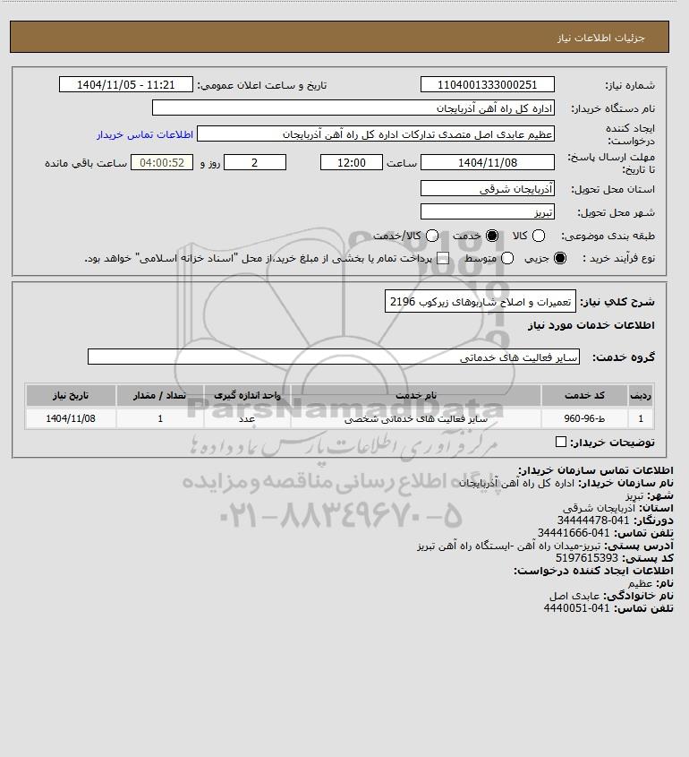 شرح کلی نیاز: تعمیرات و اصلاح شاربوهای زیرکوب 2196