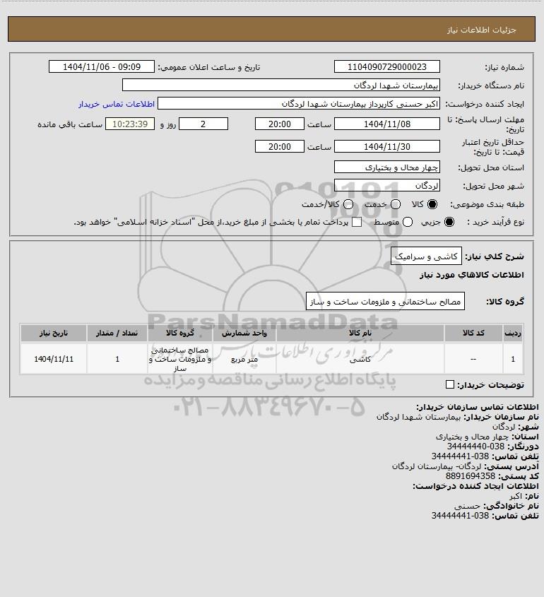 | 1 | -- | کاشی | متر مربع | مصالح ساختمانی و ملزومات ساخت و ساز | 1 | 1404/11/11 |