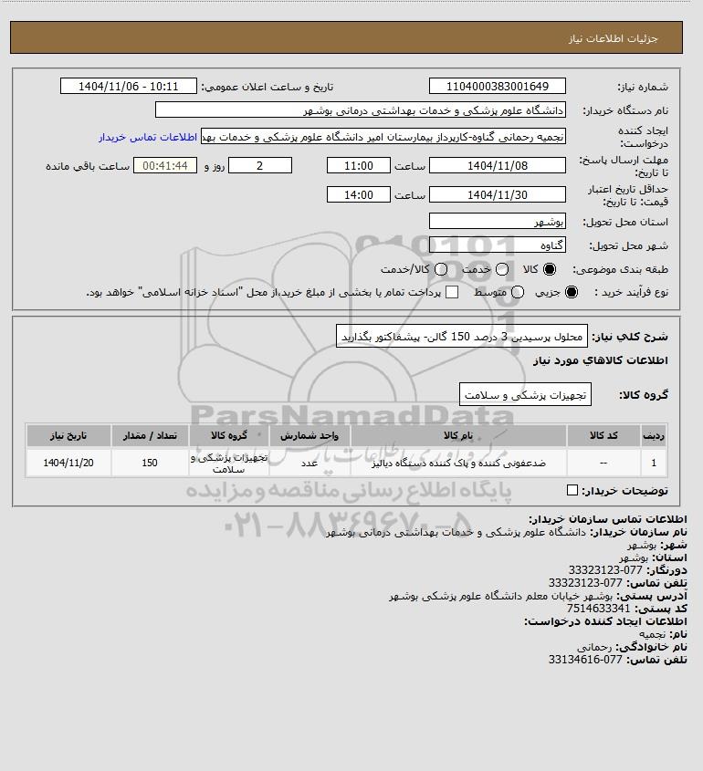 شرح کلی نیاز: محلول پرسیدین 3 درصد 150 گالن- پیشفاکتور بگذارید