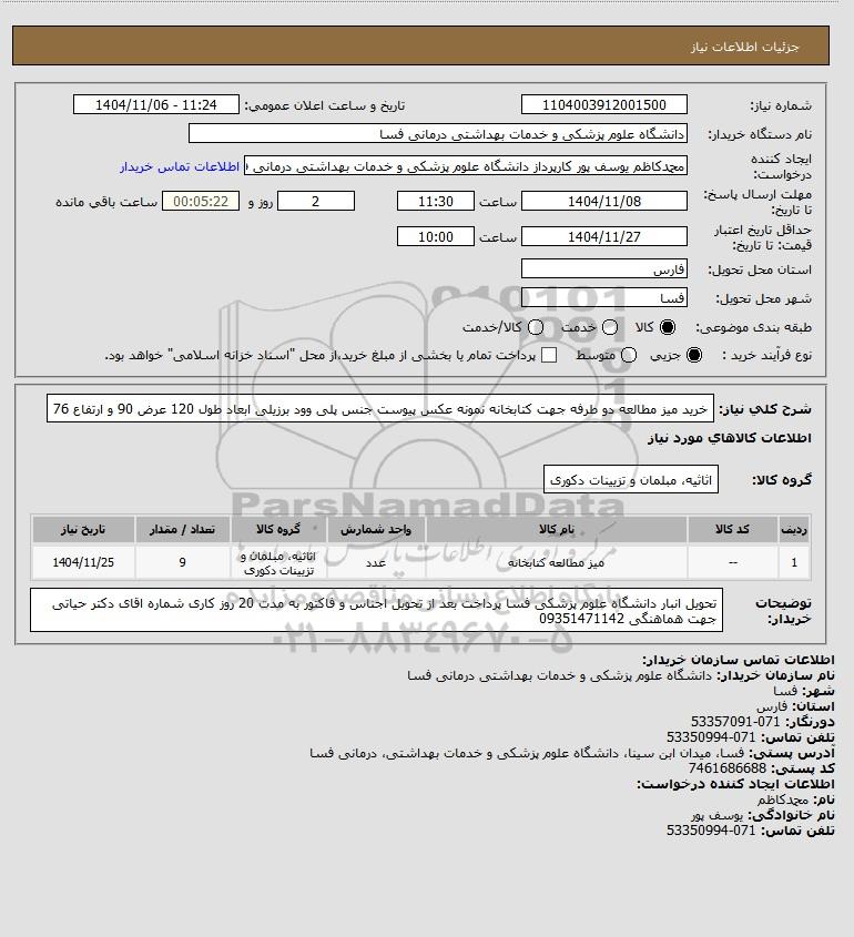 نام دستگاه خریدار:دانشگاه علوم پزشکی و خدمات بهداشتی درمانی فسا