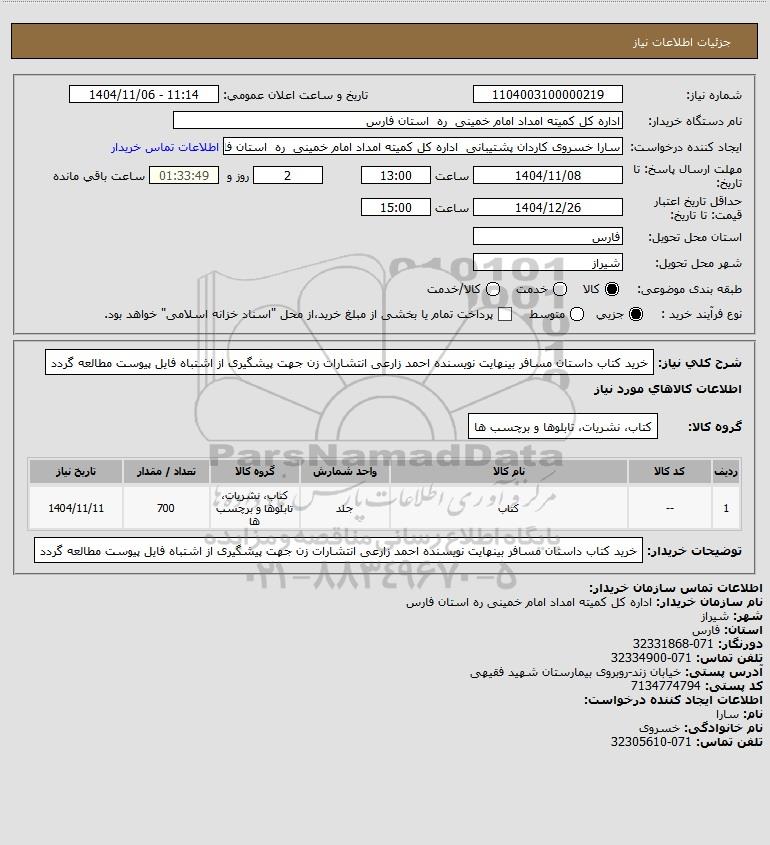 نام دستگاه خریدار:اداره کل کمیته امداد امام خمینی ره استان فارس
