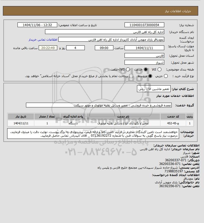 شرح کلی نیاز: تعمیر ماشین الات ریلی