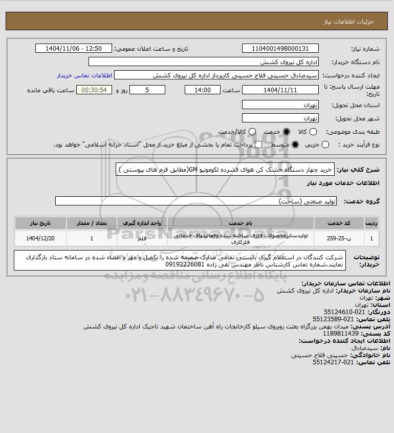 شرح کلی نیاز: خرید چهار دستگاه خشک کن هوای فشرده لکوموتیو GM(مطابق فرم های پیوستی )