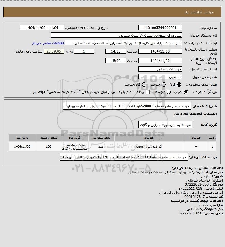 استعلام خریدضد بتن مایع به مقدار 2000کیلو یا تعداد 100عدد 20لیتری تحویل در انبار شهرداری, استعلام خریدضد بتن مایع به مقدار 2000کیلو یا تعداد 100عدد 20لیتری تحویل در انبار شهرداری