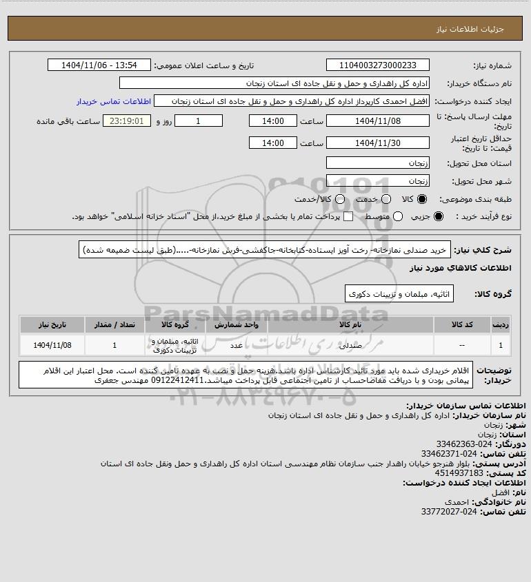 نام دستگاه خریدار:اداره کل راهداری و حمل و نقل جاده ای استان زنجان