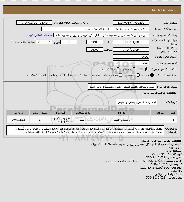 نام دستگاه خریدار:اداره کل اموزش و پرورش شهرستان های استان تهران
