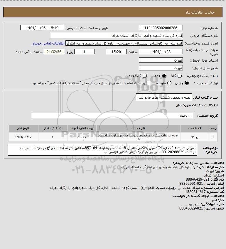 نام دستگاه خریدار:اداره کل بنیاد شهید و امور ایثارگران استان تهران