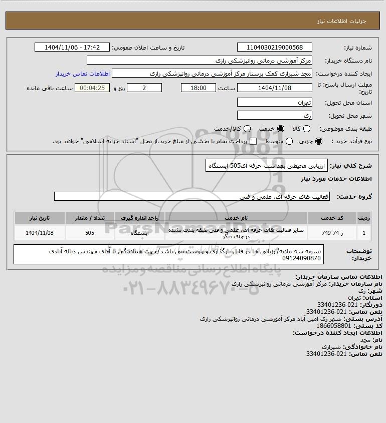شرح کلی نیاز: ارزیابی محیطی بهداشت حرفه ای505 ایستگاه