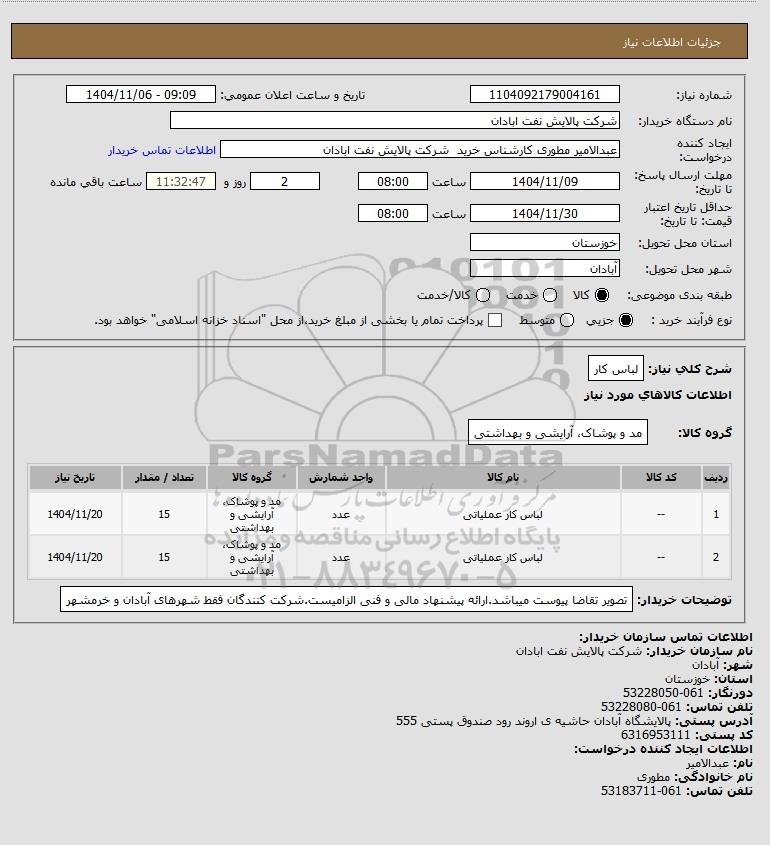 1 -- لباس کار عملیاتی عدد مد و پوشاک، آرایشی و بهداشتی 15 1404/11/20