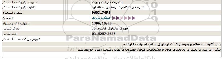 اداره برگزارکننده استعلام: اداره خرید اقلام عمومی و استاندارد