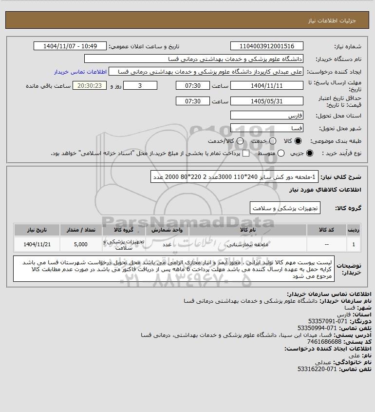 شرح کلی نیاز: 1-ملحفه دور کش سایز 240*110 3000عدد