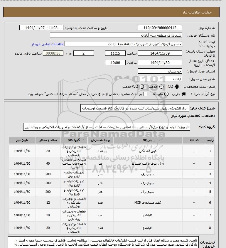 نام دستگاه خریدار:شهرداری منطقه سه آبادان