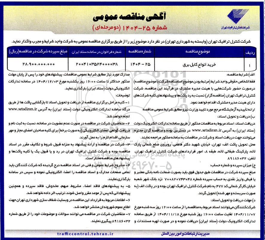 | 1 | خرید انواع کابل برق | 1404-25 | 2004103524000038 | 28.900.000.000 |