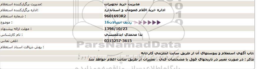 اداره برگزارکننده استعلام:     اداره خرید اقلام عمومی و استاندارد