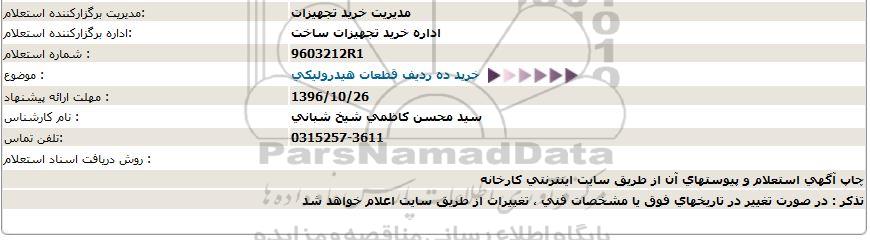 موضوع : خرید ده ردیف قطعات هیدرولیکی