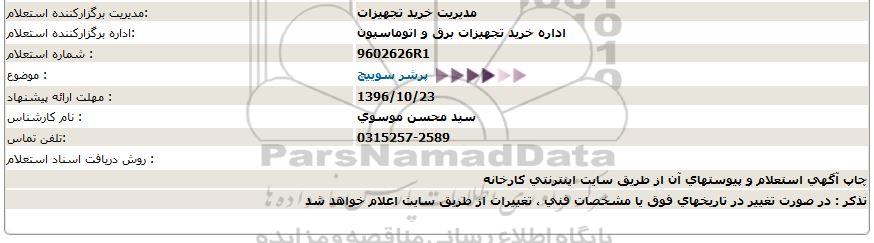 اداره برگزارکننده استعلام اداره خرید تجهیزات برق و اتوماسیون
