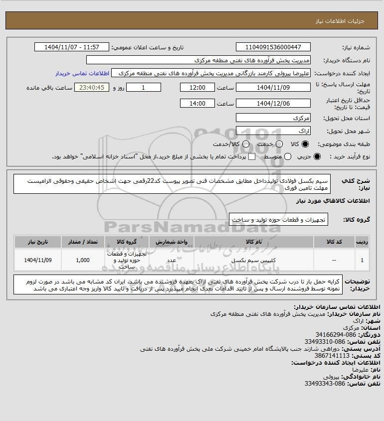 شماره نیاز: 1104091536000447