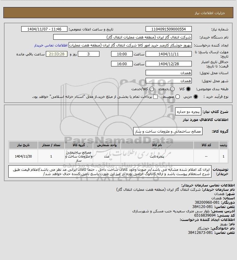 | 1 | -- | پنجره ثابت | عدد | مصالح ساختمانی و ملزومات ساخت و ساز | 1 | 1404/11/30 |