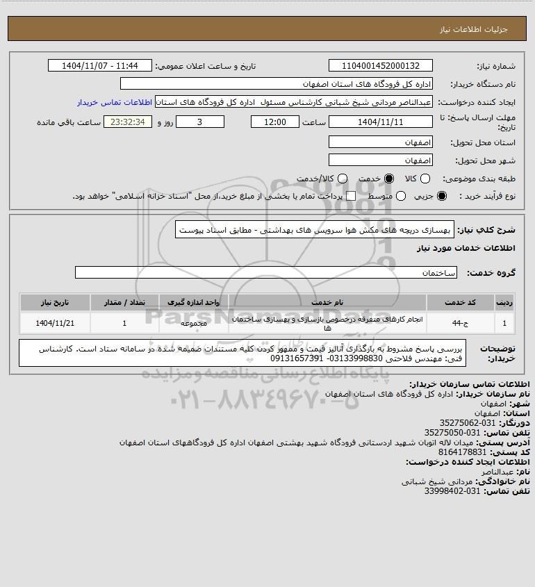 نام دستگاه خریدار:اداره کل فرودگاه های استان اصفهان