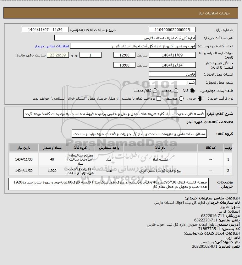 نام دستگاه خریدار:اداره کل ثبت احوال استان فارس