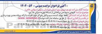 مزایده گزار: شرکت توزیع نیروی برق استان خراسان رضوی (سهامی خاص)