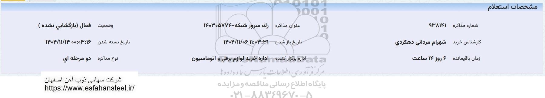 عنوان مذاکره : استعلام خرید رک سرور شبکه 140305774