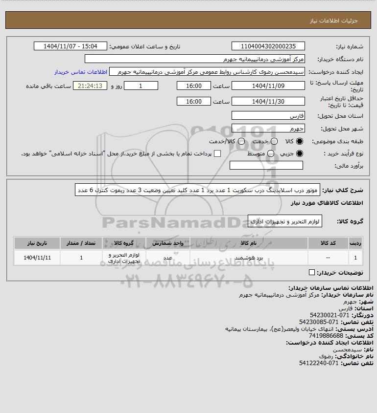 | 1 | -- | برد هوشمند | عدد | لوازم التحریر و تجهیزات اداری | 1 | 1404/11/11 |