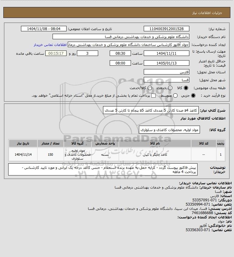 شرح کلی نیاز: کاغذ a4 صدتا کارتن 5 عددی
