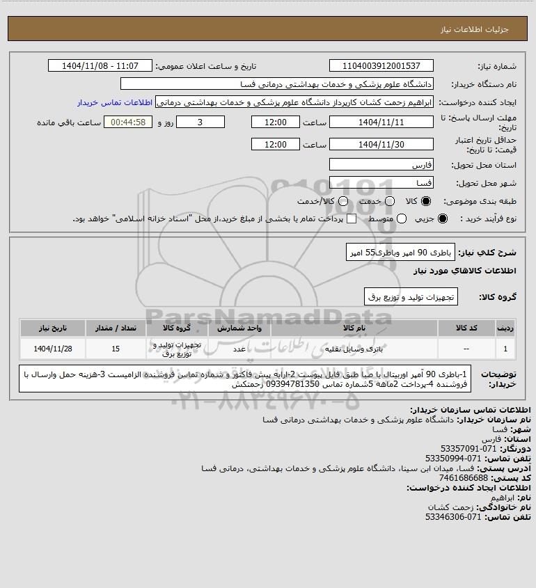 شرح کلی نیاز: باطری 90 امپر وباطری55 امپر