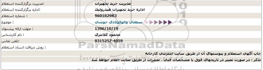 اداره برگزارکننده استعلام اداره خرید تجهیزات هیدرولیک